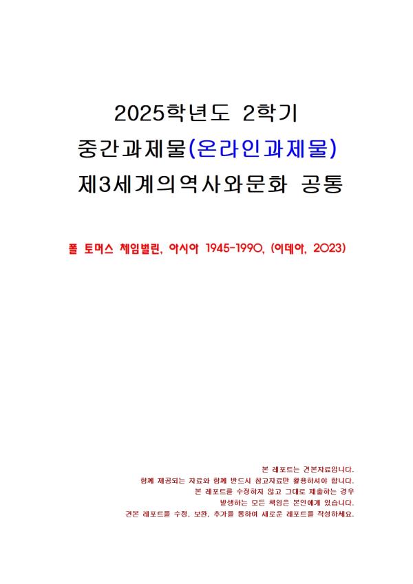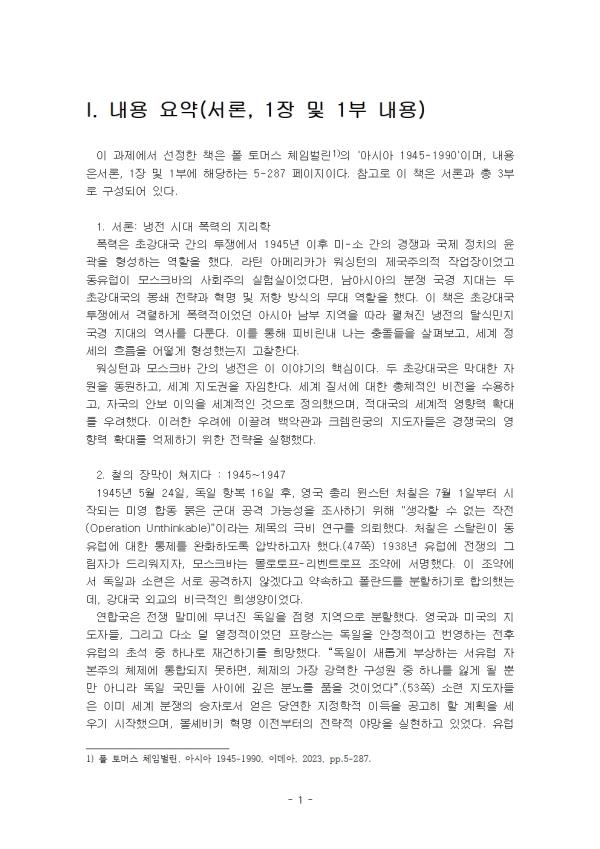 Æú Åä¸Ó½º üÀÓ¹ú¸°, ¾Æ½Ã¾Æ 1945-1990, (À̵¥¾Æ, 2023) - ¸ñ Â÷ - I. ³»¿ë ¿ä¾à(¼·Ð, 1Àå ¹× 1ºÎ ³»¿ë) II. ÀÚ½ÅÀÇ ÀÇ°ß Âü°í¹®Çå ** ÇÔ²² Á¦°øµÇ´Â Âü°íÀÚ·á ÇÑ±ÛÆÄÀÏ ** 1. ¹Ì±¹, Á¦±¹ÀÇ ¿¬´ë±â - ³»¿ë ¿ä¾à.hwp 2. ¹Ì±¹, Á¦±¹ÀÇ ¿¬´ë±â - ÀÚ½ÅÀÇ Àǰß.hwp 3. ¾Æ½Ã¾Æ 1945-1990 - ³»¿ë ¿ä¾à.hwp 4. ¾Æ½Ã¾Æ 1945-1990 – ÀÚ½ÅÀÇ Àǰß.hwp 5. ¾ËÁ¦¸®ÀüÀï 1954-1962 - ³»¿ë ¿ä¾à.hwp 6. ¾ËÁ¦¸®ÀüÀï 1954-1962 - ÀÚ½ÅÀÇ Àǰß.hwp 7. ¿µ±¹°ú À̽½¶÷ - ³»¿ë ¿ä¾à.hwp 8. ¿µ±¹°ú À̽½¶÷ - ÀÚ½ÅÀÇ Àǰß.hwp ÀÚ·á³»¿ë ¹Ì¸®º¸±â