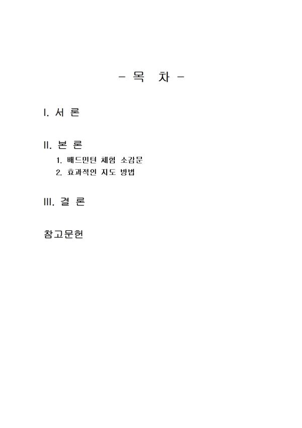 - ¸ñ Â÷ - I. ¼ ·Ð II. º» ·Ð 1. ¹èµå¹ÎÅÏ Ã¼Çè ¼Ò°¨¹® 2. È¿°úÀûÀÎ Áöµµ ¹æ¹ý III. °á ·Ð Âü°í¹®Çå ** ÇÔ²² Á¦°øµÇ´Â Âü°íÀÚ·á ÇÑ±ÛÆÄÀÏ ** 1. ¹èµå¹ÎÅÏÀ» üÇèÇÏ°í ¼Ò°¨¹®.hwp 2. ¹èµå¹ÎÅÏÀ» üÇèÇÏ°í ¼Ò°¨¹®2.hwp 3. ½ÇÁ¦ üÇèÇÑ ¿îµ¿ Á¾¸ñÀÇ ±â¼ú ¹× Áöµµ¹æ¹ý.hwp 4. ³ó±¸ ±â¼ú Áöµµ ¹æ¹ý.hwp 5. ³ó±¸ Á¾¸ñ üÇè ¼Ò°¨¹®.hwp 6. ¼·Ð ÀÛ¼º½Ã ÂüÁ¶.hwp 7. °á·Ð ÀÛ¼º½Ã ÂüÁ¶.hwp ÀÚ·á³»¿ë ¹Ì¸®º¸±â