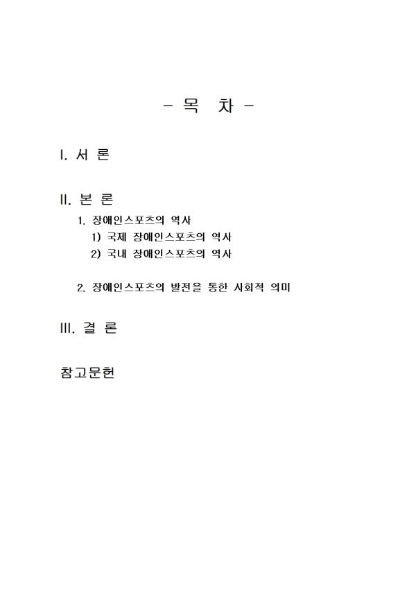 Ư¼öüÀ°·ÐÀÇ ¼ö¾÷ ³»¿ëÀ» ¹ÙÅÁÀ¸·Î ´ÙÀ½ÀÇ ³»¿ëÀ» ÀÛ¼ºÇϽÿÀ. 1) Àå¾ÖÀνºÆ÷Ã÷ ¶Ç´Â Ư¼öüÀ°ÀÇ ¿ª»ç - ¸ÖƼ¹Ìµð¾î °ÀÇ 2°¿¡¼ ¼³¸íÇϰí ÀÖ´Â Àå¾ÖÀνºÆ÷Ã÷ ¶Ç´Â Ư¼öüÀ°ÀÇ ¿ª»ç¿¡ ´ëÇÏ¿© ¼¼úÇϽÿÀ. 2) Àå¾ÖÀνºÆ÷Ã÷ ¶Ç´Â Ư¼öüÀ°ÀÇ ¹ßÀüÀ» ÅëÇÑ »çȸÀû Àǹ̿¡ ´ëÇÏ¿© ÀÚ½ÅÀÇ °ßÇØ¸¦ ¼¼úÇϽÿÀ. - Àå¾ÖÀνºÆ÷Ã÷ ¶Ç´Â Ư¼öüÀ°ÀÇ ¹ßÀüÀ» ÅëÇÑ »çȸÀû Àǹ̸¦ ÀÚÀ¯·Ó°Ô ÀÚ½ÅÀÇ °ßÇØ¸¦ ¹ÙÅÁÀ¸·Î ¼¼úÇϽÿÀ. - ¸ñ Â÷ - I. ¼ ·Ð II. º» ·Ð 1. Àå¾ÖÀνºÆ÷Ã÷ÀÇ ¿ª»ç 1) ±¹Á¦ Àå¾ÖÀνºÆ÷Ã÷ÀÇ ¿ª»ç 2) ±¹³» Àå¾ÖÀνºÆ÷Ã÷ÀÇ ¿ª»ç 2. Àå¾ÖÀνºÆ÷Ã÷ÀÇ ¹ßÀüÀ» ÅëÇÑ »çȸÀû ÀÇ¹Ì III. °á ·Ð Âü°í¹®Çå ** ÇÔ²² Á¦°øµÇ´Â Âü°íÀÚ·á ÇÑ±ÛÆÄÀÏ ** 1. Àå¾ÖÀνºÆ÷Ã÷ÀÇ ¹ßÀüÀ» ÅëÇÑ »çȸÀû ÀǹÌ.hwp 2. Àå¾ÖÀνºÆ÷Ã÷ÀÇ ¿ª»ç.hwp 3. Ư¼öüÀ° ¿ª»çÀÇ ¹ßÀüÀ» ÅëÇÑ »çȸÀû ÀǹÌ.hwp 4. Ư¼öüÀ° ¿ª»ç.hwp 5. ¼·Ð ÀÛ¼º½Ã ÂüÁ¶.hwp 6. °á·Ð ÀÛ¼º½Ã ÂüÁ¶.hwp 7. ¼·Ð ÀÛ¼º½Ã ÂüÁ¶2.hwp 8. °á·Ð ÀÛ¼º½Ã ÂüÁ¶2.hwp ÀÚ·á³»¿ë ¹Ì¸®º¸±â