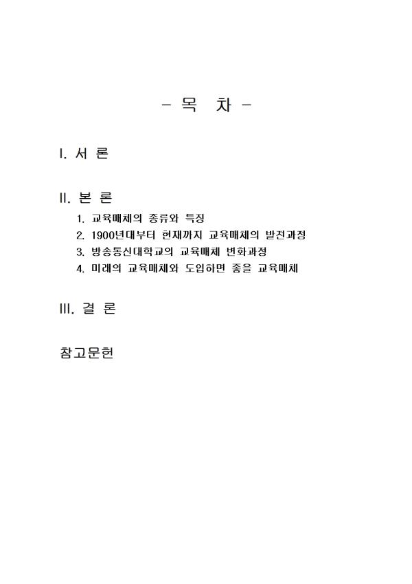 2. ±³Àç¿Í °ÀÇ ³»¿ëÀ» Âü°íÇÏ¿© 1900³â´ëºÎÅÍ ÇöÀç±îÁö ±³À°¸ÅüÀÇ ¹ßÀü°úÁ¤À» ¼³¸íÇϽÿÀ. 3. ¹æ¼ÛÅë½Å´ëÇб³¿¡¼ »ç¿ëÇϰí ÀÖ´Â ±³À°¸Åü°¡ ¾î¶² º¯È°úÁ¤À» °ÅÃÆ´ÂÁö 1972³â ¼³¸³ ÀÌÈĺÎÅÍ ½Ã±âº°·Î Á¤¸®ÇϽÿÀ. 4. ¹Ì·¡ÀÇ ±³À°¸Åü¿¡ ´ëÇØ Á¶»çÇϰí, ¿ì¸® Çб³¿¡ µµÀÔÇϸé ÁÁÀ» ±³À°¸Åü¿¡ ´ëÇØ ±× ÀÌÀ¯¿Í ÇÔ²² ¼³¸íÇϽÿÀ. - ¸ñ Â÷ - I. ¼ ·Ð II. º» ·Ð 1. ±³À°¸ÅüÀÇ Á¾·ù¿Í Ư¡ 2. 1900³â´ëºÎÅÍ ÇöÀç±îÁö ±³À°¸ÅüÀÇ ¹ßÀü°úÁ¤ 3. ¹æ¼ÛÅë½Å´ëÇб³ÀÇ ±³À°¸Åü º¯È°úÁ¤ 4. ¹Ì·¡ÀÇ ±³À°¸Åü¿Í µµÀÔÇϸé ÁÁÀ» ±³À°¸Åü III. °á ·Ð Âü°í¹®Çå ** ÇÔ²² Á¦°øµÇ´Â Âü°íÀÚ·á ÇÑ±ÛÆÄÀÏ ** 1. 1900³â´ëºÎÅÍ ÇöÀç±îÁö ±³À°¸ÅüÀÇ ¹ßÀü°úÁ¤.hwp 2. 1900³â´ëºÎÅÍ ÇöÀç±îÁö ±³À°¸ÅüÀÇ ¹ßÀü°úÁ¤2.hwp 3. ±³À°¸ÅüÀÇ Á¾·ù¿Í Ư¡.hwp 4. ±³À°¸ÅüÀÇ Á¾·ù¿Í Ư¡2.hwp 5. ¹Ì·¡ÀÇ ±³À°¸Åü¿Í ¹æ¼Û´ë µµÀÔ ¹æ¾È.hwp 6. ¹Ì·¡ÀÇ ±³À°¸Åü¿Í ¹æ¼Û´ë µµÀÔ ¹æ¾È2.hwp 7. ¹æ¼ÛÅë½Å´ëÇб³ ±³À°¸Åü º¯È°úÁ¤(1972~ÇöÀç).hwp 8. ¹æ¼ÛÅë½Å´ëÇб³ ±³À°¸Åü º¯È°úÁ¤(1972~ÇöÀç)2.hwp ÀÚ·á³»¿ë ¹Ì¸®º¸±â