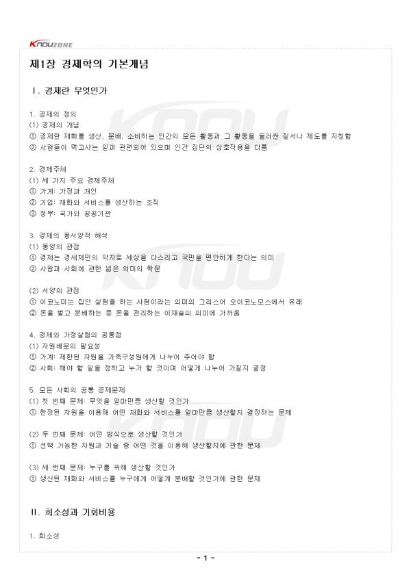 ¥°. °æÁ¦¶õ ¹«¾ùÀΰ¡ 1. °æÁ¦ÀÇ Á¤ÀÇ (1) °æÁ¦ÀÇ °³³ä ¨ç °æÁ¦¶õ Àçȸ¦ »ý»ê, ºÐ¹è, ¼ÒºñÇÏ´Â Àΰ£ÀÇ ¸ðµç Ȱµ¿°ú ±× Ȱµ¿À» µÑ·¯½Ñ Áú¼³ª Á¦µµ¸¦ ÁöĪÇÔ ¨è »ç¶÷µéÀÌ ¸Ô°í»ç´Â Àϰú °ü·ÃµÇ¾î ÀÖÀ¸¸ç Àΰ£ Áý´ÜÀÇ »óÈ£ÀÛ¿ëÀ» ´Ù·ë 2. °æÁ¦ÁÖü (1) ¼¼ °¡Áö ÁÖ¿ä °æÁ¦ÁÖü ¨ç °¡°è: °¡Á¤°ú °³ÀÎ ¨è ±â¾÷: ÀçÈ¿Í ¼ºñ½º¸¦ »ý»êÇÏ´Â Á¶Á÷ ¨é Á¤ºÎ: ±¹°¡¿Í °ø°ø±â°ü 3. °æÁ¦ÀÇ µ¿¼¾çÀû ÇØ¼® (1) µ¿¾çÀÇ °üÁ¡ ¨ç °æÁ¦´Â °æ¼¼Á¦¹ÎÀÇ ¾àÀÚ·Î ¼¼»óÀ» ´Ù½º¸®°í ±¹¹ÎÀ» Æí¾ÈÇÏ°Ô ÇÑ´Ù´Â ÀÇ¹Ì ¨è »ç¶÷°ú »çȸ¿¡ °üÇÑ ³ÐÀº ÀǹÌÀÇ Çй® (2) ¼¾çÀÇ °üÁ¡ ¨ç ÀÌÄÚ³ë¹Ì´Â Áý¾È »ì¸²À» ÇÏ´Â »ç¶÷À̶ó´Â ÀǹÌÀÇ ±×¸®½º¾î ¿ÀÀÌÄÚ³ë¸ð½º¿¡¼ À¯·¡ ¨è µ·À» ¹ú°í ºÐ¹èÇÏ´Â µî µ·À» °ü¸®ÇÏ´Â ÀÌÀç¼úÀÇ Àǹ̿¡ °¡±î¿ò 4. °æÁ¦¿Í °¡Á¤»ì¸²ÀÇ °øÅëÁ¡ (1) ÀÚ¿ø¹èºÐÀÇ Çʿ伺 ¨ç °¡°è: Á¦ÇÑµÈ ÀÚ¿øÀ» °¡Á·±¸¼º¿ø¿¡°Ô ³ª´©¾î ÁÖ¾î¾ß ÇÔ ¨è »çȸ: ÇØ¾ß ÇÒ ÀÏÀ» Á¤ÇÏ°í ´©°¡ ÇÒ °ÍÀÌ¸ç ¾î¶»°Ô ³ª´©¾î °¡ÁúÁö °áÁ¤ 5. ¸ðµç »çȸÀÇ °øÅë °æÁ¦¹®Á¦ (1) ù ¹øÂ° ¹®Á¦: ¹«¾ùÀ» ¾ó¸¶¸¸Å »ý»êÇÒ °ÍÀΰ¡ ¨ç ÇÑÁ¤µÈ ÀÚ¿øÀ» ÀÌ¿ëÇØ ¾î¶² ÀçÈ¿Í ¼ºñ½º¸¦ ¾ó¸¶¸¸Å »ý»êÇÒÁö °áÁ¤ÇÏ´Â ¹®Á¦ (2) µÎ ¹øÂ° ¹®Á¦: ¾î¶² ¹æ½ÄÀ¸·Î »ý»êÇÒ °ÍÀΰ¡ ¨ç ¼±Åà °¡´ÉÇÑ ÀÚ¿ø°ú ±â¼ú Áß ¾î¶² °ÍÀ» ÀÌ¿ëÇØ »ý»êÇÒÁö¿¡ °üÇÑ ¹®Á¦ (3) ¼¼ ¹øÂ° ¹®Á¦: ´©±¸¸¦ À§ÇØ »ý»êÇÒ °ÍÀΰ¡ ¨ç »ý»êµÈ ÀçÈ¿Í ¼ºñ½º¸¦ ´©±¸¿¡°Ô ¾î¶»°Ô ºÐ¹èÇÒ °ÍÀΰ¡¿¡ °üÇÑ ¹®Á¦ ¥±. Èñ¼Ò¼º°ú ±âȸºñ¿ë 1. Èñ¼Ò¼º (1) Èñ¼Ò¼ºÀÇ Á¤ÀÇ ¨ç °æÁ¦ÇÐÀº ¼±ÅÃÀÇ Çй® ¨è Àΰ£ÀÌ ¿øÇÏ´Â °ÍÀº ¹«ÇÑÈ÷ Á¸ÀçÇÏÁö¸¸ °ø±ÞµÇ´Â ÀÚ¿øÀº ÇÑÁ¤Àû ¨é ÀÌ·¯ÇÑ ºÎÁ·ÇÔÀ» Èñ¼Ò¼ºÀ̶ó ÇÔ (2) Èñ¼Ò¼ºÀÇ Æ¯Â¡ ¨ç Èñ¼Ò¼ºÀº Àý´ëÀûÀÎ ¼ö·®ÀÇ ºÎÁ·ÀÌ ¾Æ´Ñ ¿å±¸¿Í »óȲ¿¡ µû¶ó »ó´ëÀûÀ¸·Î ³ªÅ¸³² ¨è ºÎÁ¸·®ÀÌ Ç³ºÎÇÏÁö ¾ÊÀº ÀçÈ¶óµµ »ç¶÷µéÀÌ ÇÊ¿ä·Î ÇÏÁö ¾ÊÀ¸¸é Èñ¼Ò¼ºÀÌ ¾øÀ½ ¨é ºÎÁ¸·®ÀÌ ¸¹¾Æµµ »ç¶÷µéÀÇ ¿å±¸°¡ ÀÖ°í ´Ù¸¥ »ç¶÷°ú Àçȸ¦ µÎ°í ´ÙÅõ¾î¾ß Çϸé Èñ¼Ò¼ºÀÌ ÀÖÀ½ (3) ÀÚÀ¯Àç¿Í °æÁ¦Àç ¨ç ÀÚÀ¯Àç: ºÎÁ¸·®ÀÌ ³Ê¹« ¸¹¾Æ¼ ´ë°¡¸¦ ÁöºÒÇÏÁö ¾Ê°íµµ ´©±¸³ª »ç¿ëÇÒ ¼ö ÀÖ´Â ÀçÈ • °ø±â, ÇÞºû µîÀÌ ÇØ´ç • ½ÃÀå¿¡¼ °¡°ÝÀÌ Çü¼ºµÇÁö ¾ÊÀ½ ¨è °æÁ¦Àç: »ç¶÷µéÀÇ ¿å±¸¿¡ ºñÇØ ÀÚ¿øÀÇ Á¸Àç·®ÀÌ Àû¾î Èñ¼Ò¼ºÀÌ ÀÖ´Â ÀçÈ • ½ÃÀå¿¡¼ °¡°ÝÀÌ Çü¼ºµÇ°í °Å·¡µÊ • ÀϹÝÀûÀ¸·Î ´ëºÎºÐÀÇ ÀçȰ¡ °æÁ¦Àç¿¡ ÇØ´ç (4) ÀÚÀ¯Àç¿Í °æÁ¦ÀçÀÇ º¯È ¨ç ½Ã´ë¿¡ µû¶ó º¯È °¡´É ¨è ¿¹: °ú°ÅÀÇ ¸¼Àº ¹°Àº ÀÚÀ¯Àç¿´À¸³ª Çö´ë¿¡´Â ȯ°æ¿À¿°À¸·Î ÀÎÇØ °æÁ¦Àç·Î º¯ÇÔ 2. ÇÕ¸®Àû ¼±ÅÃ, ºñ¿ë°ú ÆíÀÍ (1) °æÁ¦ÁÖüÀÇ ÇÕ¸®Àû ¼±Åà ¨ç °æÁ¦ÁÖü´Â °æÁ¦¹®Á¦¸¦ ÇÕ¸®Àû ¼±ÅÃÀ» ÅëÇØ ÇØ°á ¨è °æÁ¦ÁÖü´Â Àڽſ¡°Ô ¼ÕÇØ°¡ µÇ´Â ÀÏÀº ÇÏÁö ¾Ê´Â À̱âÀûÀÎ Á¸Àç·Î °£ÁÖ ¨é À̱âÀûÀ̶ó´Â Ç¥ÇöÀº ÀÚ½ÅÀÇ ÀÌÀÍÀ» °í·ÁÇØ ÀÇ»ç°áÁ¤ÇÏ´Â »ç½ÇÀ» ¼³¸íÇÏ´Â °ÍÀÏ »Ó µµ´ö¼º ÆÇ´ÜÀº ¾Æ´Ô (2) °æÁ¦Çп¡¼ÀÇ ÇÕ¸®¼º ¨ç ¼ö´ÜÀÇ ÇÕ¸®¼º¸¸ °í·ÁÇϸç À±¸®¼º°ú °°Àº ¸ñÀûÀÇ ÇÕ¸®¼ºÀº °í·ÁÇÏÁö ¾ÊÀ½ ¨è ¾î¶°ÇÑ ¸ñÇ¥¸¦ À§ÇØ ±× ¼ö´ÜÀÌ °¡Àå È¿À²ÀûÀÎÁö¸¸ °í·Á ¨é ±× ¸ñÇ¥¸¦ Ãß±¸ÇÏ´Â °ÍÀÌ ¿ÇÀºÁö ±×¸¥Áö´Â °í·ÁÇÏÁö ¾ÊÀ½ (3) ÇÕ¸®Àû ¼±ÅÃÀÇ ±âÁØ ¨ç ¿©·¯ °³ÀÇ ´ë¾È Áß ÆíÀͰú ºñ¿ëÀ» ºñ±³ÇØ ÆíÀÍÀÌ ºñ¿ëº¸´Ù ´õ Å« °ÍÀ» ¼±Åà ¨è ÃÖ¼ÒÀÇ ºñ¿ëÀ¸·Î ÃÖ´ëÀÇ È¿°ú¸¦ ¾òÀ» ¼ö ÀÖ´Â °ÍÀ» ¼±Åà (4) ÆíÀÍÀÇ °³³ä ¨ç ÆíÀÍÀº ¾î¶² ¼±ÅÃÀ¸·Î ÀÎÇØ ¾ò´Â ¸¸Á·À̳ª À̵æÀ» ÀÇ¹Ì ¨è ÈÆó°¡Ä¡·Î ȯ»êÇÒ ¼ö ÀÖ´Â ÆíÀͻӸ¸ ¾Æ´Ï¶ó ¼öÄ¡ÈÇϱ⠾î·Á¿î ½É¸®Àû ¸¸Á·°¨µµ Æ÷ÇÔ ¨é ÆíÀÍÀº ÁÖ°üÀûÀÌ¸ç »óȲ¿¡ µû¶ó ´Þ¶óÁú ¼ö ÀÖÀ½ ¨ê ¿¹: ´õ¿î ¿©¸§³¯ ¾ÆÀ̽ºÅ©¸²ÀÇ ÆíÀÍÀÌ Ãß¿î °Ü¿ï³¯º¸´Ù ´õ Å - Áß·« - |
