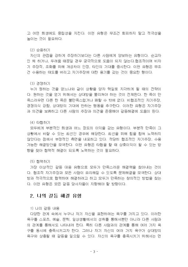 °ÀÇ ¹× ±³Àç 13° ¡°³ªÀÇ °¥µî ½ºÅ¸ÀÏ¡±ÀÇ ³»¿ëÀ» ¹ÙÅÁÀ¸·Î °¥µî°ú °¥µî´ëó À¯Çü¿¡ ´ëÇØ ÇмúÀûÀ¸·Î Á¤¸®ÇÑ ÈÄ, ³ªÀÇ »î¿¡¼ °æÇèÇß´ø ´ëÀΰü°è °¥µîÀ» ¹ÙÅÁÀ¸·Î ³ªÀÇ °¥µî ÇØ°á À¯ÇüÀ» ºÐ¼®Çϰí, ÀÌ·¯ÇÑ ºÐ¼® °úÁ¤¿¡¼ ¹è¿îÁ¡°ú ´À³¤Á¡À» ±â¼úÇϽÿÀ.