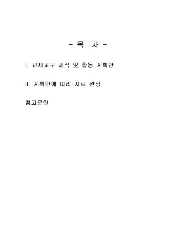 2. °èȹ¾È¿¡ µû¶ó ÀڷḦ ¸¸µé¾î ¿Ï¼ºÇϽÿÀ. ¿Ï¼ºÇÑ ±³Àç±³±¸ »çÁø À̹ÌÁö¸¦ °èȹ¾È¿¡ ÷°¡Çϰí, ¸¸µå´Â °úÁ¤¿¡¼ ´Þ¶óÁø Á¡À» °èȹ¾È¿¡ ÆÄ¶õ»öÀ¸·Î Ãß°¡ ¼öÁ¤ÇÏ¿© Á¦ÃâÇϽÿÀ. (15Á¡) (1) ±³Àç±³±¸¸¦ À§ÇØ ÁغñÇÑ Àç·á¸¦ ÇѲ¨¹ø¿¡ ³õ°í »çÁø Âï¾î Æ÷ÇÔÇÒ °Í(»çÁø 1Àå)(2) ¿Ï¼ºÇÑ ±³Àç±³±¸¿Í ¼ö°»ý º»ÀÎÀÇ ¸ð½ÀÀ» ÇÔ²² Âï¾î »çÁøÀ¸·Î Æ÷ÇÔÇÒ °Í(»çÁø 1Àå) - ¸ñ Â÷ - I. ±³Àç±³±¸ Á¦ÀÛ ¹× Ȱµ¿ °èȹ¾È II. °èȹ¾È¿¡ µû¶ó ÀÚ·á ¿Ï¼º Âü°í¹®Çå ÀÚ·á³»¿ë ¹Ì¸®º¸±â