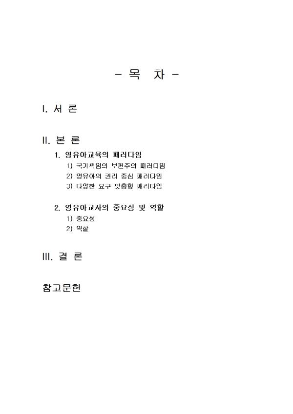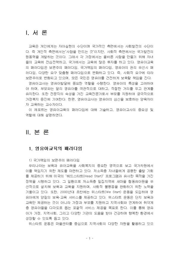 - ¸ñ Â÷ - I. ¼ ·Ð II. º» ·Ð 1. ¿µÀ¯¾Æ±³À°ÀÇ ÆÐ·¯´ÙÀÓ 1) ±¹°¡Ã¥ÀÓÀÇ º¸ÆíÁÖÀÇ ÆÐ·¯´ÙÀÓ 2) ¿µÀ¯¾ÆÀÇ ±Ç¸® Á᫐ ÆÐ·¯´ÙÀÓ 3) ´Ù¾çÇÑ ¿ä±¸ ¸ÂÃãÇü ÆÐ·¯´ÙÀÓ 2. ¿µÀ¯¾Æ±³»çÀÇ Á߿伺 ¹× ¿ªÇÒ 1) Á߿伺 2) ¿ªÇÒ III. °á ·Ð Âü°í¹®Çå ** ÇÔ²² Á¦°øµÇ´Â Âü°íÀÚ·á ÇÑ±ÛÆÄÀÏ ** 1. ¿µÀ¯¾Æ±³»çÀÇ Á߿伺 ¹× ¿ªÇÒ.hwp 2. ¿µÀ¯¾Æ±³»çÀÇ Á߿伺 ¹× ¿ªÇÒ2.hwp 3. ¿µÀ¯¾Æ±³À°ÀÇ ÆÐ·¯´ÙÀÓ.hwp 4. ¿µÀ¯¾Æ±³À°ÀÇ ÆÐ·¯´ÙÀÓ2.hwp 5. ¼·Ð ÀÛ¼º½Ã ÂüÁ¶.hwp 6. °á·Ð ÀÛ¼º½Ã ÂüÁ¶.hwp 7. ¼·Ð ÀÛ¼º½Ã ÂüÁ¶2.hwp 8. °á·Ð ÀÛ¼º½Ã ÂüÁ¶2.hwp ÀÚ·á³»¿ë ¹Ì¸®º¸±â