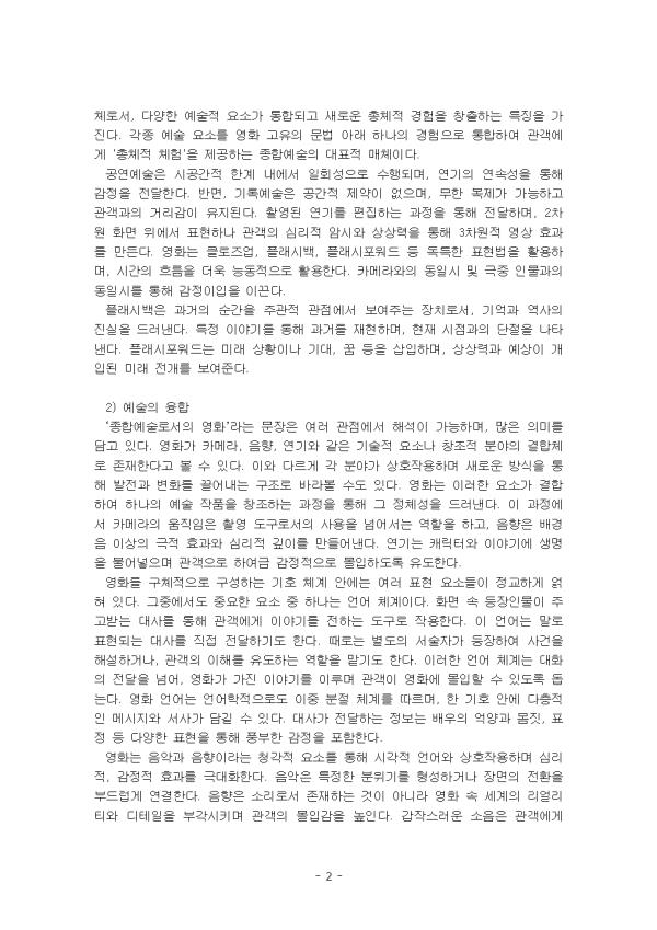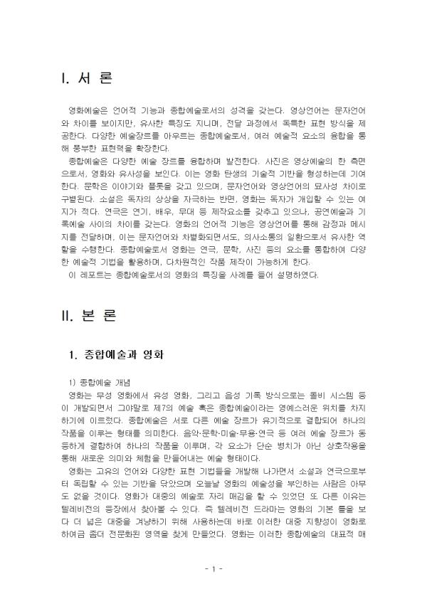 - ¸ñ Â÷ - I. ¼ ·Ð II. º» ·Ð 1. Á¾ÇÕ¿¹¼ú°ú ¿µÈ 2. Á¾ÇÕ¿¹¼ú·Î¼ ¿µÈÀÇ Æ¯Â¡ III. °á ·Ð Âü°í¹®Çå ** ÇÔ²² Á¦°øµÇ´Â Âü°íÀÚ·á ÇÑ±ÛÆÄÀÏ ** 1. Á¾ÇÕ¿¹¼ú·Î¼ ¿µÈÀÇ Æ¯Â¡.hwp 2. Á¾ÇÕ¿¹¼ú·Î¼ ¿µÈÀÇ Æ¯Â¡2.hwp 3. Á¾ÇÕ¿¹¼ú·Î¼ ¿µÈÀÇ Æ¯Â¡3.hwp 4. Á¾ÇÕ¿¹¼ú·Î¼ ¿µÈÀÇ Æ¯Â¡4.hwp 5. ¼·Ð ÀÛ¼º½Ã ÂüÁ¶.hwp 6. °á·Ð ÀÛ¼º½Ã ÂüÁ¶.hwp 7. ¼·Ð ÀÛ¼º½Ã ÂüÁ¶2.hwp 8. °á·Ð ÀÛ¼º½Ã ÂüÁ¶2.hwp ÀÚ·á³»¿ë ¹Ì¸®º¸±â