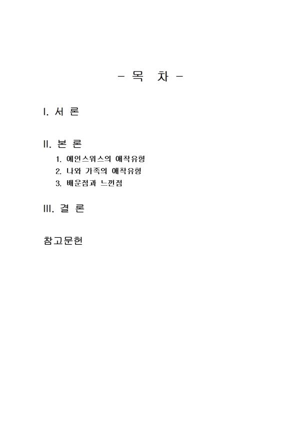 - ¸ñ Â÷ - I. ¼ ·Ð II. º» ·Ð 1. ¿¡Àνº¿ö½ºÀÇ ¾ÖÂøÀ¯Çü 2. ³ª¿Í °¡Á·ÀÇ ¾ÖÂøÀ¯Çü 3. ¹è¿îÁ¡°ú ´À³¤Á¡ III. °á ·Ð Âü°í¹®Çå ** ÇÔ²² Á¦°øµÇ´Â Âü°íÀÚ·á ÇÑ±ÛÆÄÀÏ ** 1. ³ª¿Í °¡Á·ÀÇ ¾ÖÂøÀ¯Çü.hwp 2. ³ª¿Í °¡Á·ÀÇ ¾ÖÂøÀ¯Çü2.hwp 3. ¹è¿îÁ¡°ú ´À³¤Á¡.hwp 4. ¹è¿îÁ¡°ú ´À³¤Á¡2.hwp 5. ¿¡Àνº¿ö½ºÀÇ ¾ÖÂøÀ¯Çü.hwp 6. ¿¡Àνº¿ö½ºÀÇ ¾ÖÂøÀ¯Çü2.hwp 7. ¼·Ð ÀÛ¼º½Ã ÂüÁ¶.hwp 8. °á·Ð ÀÛ¼º½Ã ÂüÁ¶.hwp 9. ¼·Ð ÀÛ¼º½Ã ÂüÁ¶2.hwp 10. °á·Ð ÀÛ¼º½Ã ÂüÁ¶2.hwp ÀÚ·á³»¿ë ¹Ì¸®º¸±â