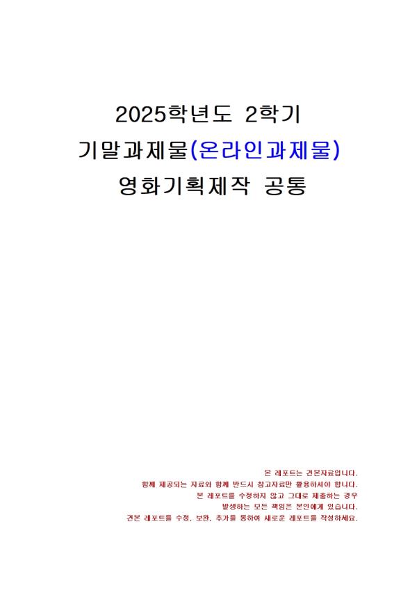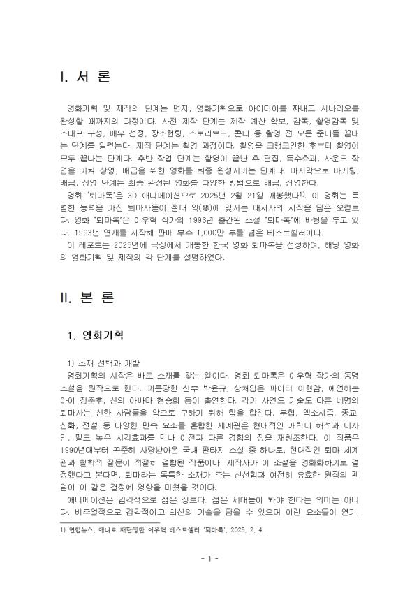 - ¸ñ Â÷ - I. ¼ ·Ð II. º» ·Ð 1. ¿µÈ±âȹ 2. »çÀü Á¦ÀÛ ´Ü°è(Pre-Production) 3. Á¦ÀÛ ´Ü°è(Production) 4. ÈÄ¹Ý ÀÛ¾÷ ´Ü°è(Post-production) 5. ¸¶ÄÉÆÃ, ¹è±Þ, »ó¿µ III. °á ·Ð Âü°í¹®Çå ** ÇÔ²² Á¦°øµÇ´Â Âü°íÀÚ·á ÇÑ±ÛÆÄÀÏ ** 1. ¿µÈ±âȹ.hwp 2. ¿µÈ±âȹ2.hwp 3. »çÀü Á¦ÀÛ ´Ü°è (Pre-Production).hwp 4. »çÀü Á¦ÀÛ ´Ü°è (Pre-Production)2.hwp 5. Á¦ÀÛ ´Ü°è (Production).hwp 6. Á¦ÀÛ ´Ü°è (Production)2.hwp 7. ÈÄ¹Ý ÀÛ¾÷ ´Ü°è (Post-Production).hwp 8. ÈÄ¹Ý ÀÛ¾÷ ´Ü°è (Post-Production)2.hwp 9. ¸¶ÄÉÆÃ, ¹è±Þ, »ó¿µ.hwp 10. ¸¶ÄÉÆÃ, ¹è±Þ, »ó¿µ2.hwp 11. ¼·Ð ÀÛ¼º½Ã ÂüÁ¶.hwp 12. °á·Ð ÀÛ¼º½Ã ÂüÁ¶.hwp 13. ¼·Ð ÀÛ¼º½Ã ÂüÁ¶2.hwp 14. °á·Ð ÀÛ¼º½Ã ÂüÁ¶2.hwp ÀÚ·á³»¿ë ¹Ì¸®º¸±â