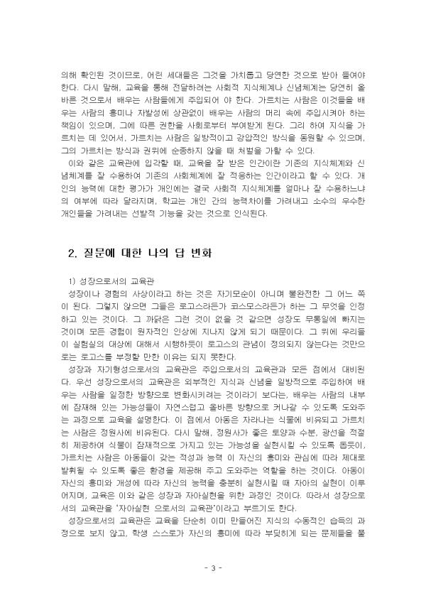 ±³À°°íÀüÀÇ ÀÌÇØ °ÀǸ¦ µè°í ¡®±³À°À̶õ ¹«¾ùÀΰ¡¡¯¶ó´Â Áú¹®¿¡ ´ëÇÑ ³ªÀÇ ´äÀÌ ¾î¶»°Ô ´Þ¶óÁ³´ÂÁö ¾²¼¼¿ä.