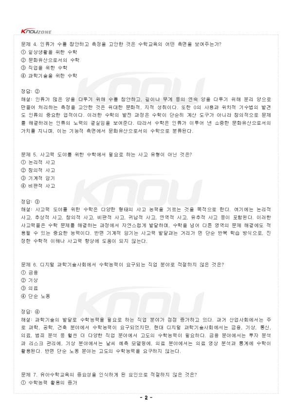 ¹®Á¦ 1. ¼öÇб³À°ÀÌ ÇÊ¿äÇÑ ÀÌÀ¯¸¦ ¼³¸íÇÏ´Â °üÁ¡ Áß °¡Ä¡Àû Ãø¸é¿¡ ÇØ´çÇÏ´Â °ÍÀº? ¨ç ½Ç¿ëÀû °¡Ä¡, ¹®ÈÀû °¡Ä¡, µµ¾ßÀû °¡Ä¡ ¨è ÀÏ»ó»ýȰÀ» À§ÇÑ ¼öÇÐ, Á÷¾÷À» À§ÇÑ ¼öÇÐ ¨é °úÇÐ ¹× ±â¼ú ºÐ¾ß¸¦ À§ÇÑ ¼öÇÐ ¨ê ¹®ÈÀ¯»êÀ¸·Î¼ÀÇ ¼öÇÐ, Á÷¾÷À» À§ÇÑ ¼öÇÐ Á¤´ä: ¨ç ÇØ¼³: ¼öÇб³À°ÀÌ ÇÊ¿äÇÑ ÀÌÀ¯´Â Å©°Ô °¡Ä¡Àû Ãø¸é°ú ±â´ÉÀû Ãø¸éÀ¸·Î ³ª´©¾î ¼³¸íÇÒ ¼ö ÀÖ´Ù. °¡Ä¡Àû Ãø¸é¿¡¼´Â ½Ç¿ëÀû °¡Ä¡, ¹®ÈÀû °¡Ä¡, µµ¾ßÀû °¡Ä¡·Î ±¸ºÐµÈ´Ù. ½Ç¿ëÀû °¡Ä¡´Â ÀÏ»ó»ýȰ¿¡¼ ¼öÇÐÀ» Ȱ¿ëÇÏ´Â °ÍÀ» ÀǹÌÇϰí, ¹®ÈÀû °¡Ä¡´Â Àηù°¡ ÀÌ·ç¾î³½ ÁöÀû ¼ºÃë·Î¼ÀÇ ¼öÇÐÀ» ÀǹÌÇϸç, µµ¾ßÀû °¡Ä¡´Â ³í¸®Àû »ç°í, âÀÇÀû »ç°í µîÀ» ±â¸£´Â °ÍÀ» ¸»ÇÑ´Ù. ¹Ý¸é ±â´ÉÀû Ãø¸éÀº ÀÏ»ó»ýȰÀ» À§ÇÑ ¼öÇÐ, ¹®ÈÀ¯»êÀ¸·Î¼ÀÇ ¼öÇÐ, Á÷¾÷À» À§ÇÑ ¼öÇÐ, °úÇÐ ¹× ±â¼ú ºÐ¾ß¸¦ À§ÇÑ ¼öÇÐ µî ½ÇÁ¦ Ȱ¿ë ¿µ¿ª¿¡ µû¶ó ±¸ºÐµÈ´Ù. ¹®Á¦ 2. ´ÙÀ½ Áß ±â´ÉÀû Ãø¸é¿¡¼ ¼öÇб³À°ÀÌ ÇÊ¿äÇÑ ÀÌÀ¯·Î ÀûÀýÇÏÁö ¾ÊÀº °ÍÀº? ¨ç ÀÏ»ó»ýȰÀ» À§ÇÑ ¼öÇÐ ¨è µµ¾ßÀû °¡Ä¡ ¨é Á÷¾÷À» À§ÇÑ ¼öÇÐ ¨ê °úÇÐ ¹× ±â¼ú ºÐ¾ß¸¦ À§ÇÑ ¼öÇÐ Á¤´ä: ¨è ÇØ¼³: ±â´ÉÀû Ãø¸é¿¡¼ ¼öÇб³À°ÀÌ ÇÊ¿äÇÑ ÀÌÀ¯´Â ÀÏ»ó»ýȰÀ» À§ÇÑ ¼öÇÐ, ¹®ÈÀ¯»êÀ¸·Î¼ÀÇ ¼öÇÐ, Á÷¾÷À» À§ÇÑ ¼öÇÐ, °úÇÐ ¹× ±â¼ú ºÐ¾ß¸¦ À§ÇÑ ¼öÇÐÀ¸·Î ±¸ºÐµÈ´Ù. ÀÌ´Â ¼öÇÐÀÌ ½ÇÁ¦·Î ¾î¶² ¿µ¿ª¿¡¼ Ȱ¿ëµÇ´ÂÁö¿¡ µû¶ó ºÐ·ùÇÑ °ÍÀÌ´Ù. ¹Ý¸é µµ¾ßÀû °¡Ä¡´Â °¡Ä¡Àû Ãø¸é¿¡ ÇØ´çÇϸç, ³í¸®Àû »ç°í, Ãß»óÀû »ç°í, âÀÇÀû »ç°í, ºñÆÇÀû »ç°í µî »ç°í·ÂÀ» ±â¸£´Â °ÍÀ» ÀǹÌÇÑ´Ù. µû¶ó¼ µµ¾ßÀû °¡Ä¡´Â ±â´ÉÀû Ãø¸éÀÌ ¾Æ´Ñ °¡Ä¡Àû Ãø¸éÀÇ ºÐ·ù¿¡ ¼ÓÇÑ´Ù. - Áß·« - |
