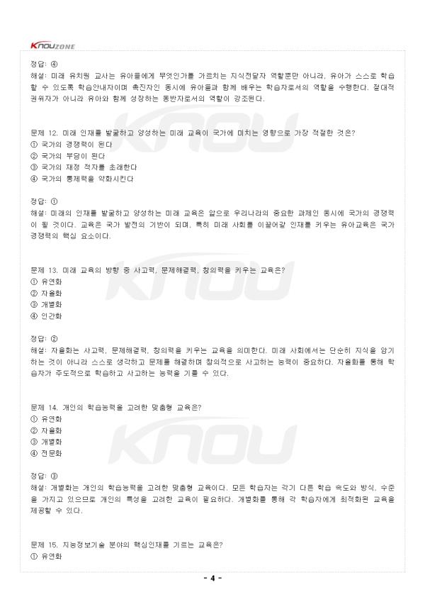 ¹®Á¦ 1. ¹Ì·¡ ±³À°ÀÇ º¯È¿äÀÎÀ¸·Î ¿ÇÁö ¾ÊÀº °ÍÀº? ¨ç ÇзÉÀα¸ÀÇ °¨¼Ò ¨è ´Ù¹®È¡¤±Û·Î¹ú »çȸ·ÎÀÇ º¯È ¨é 4Â÷ »ê¾÷Çõ¸íÀÇ ÁøÇà ¨ê ÀüÅëÀû °¡Á·±¸Á¶ÀÇ °È Á¤´ä: ¨ê ÇØ¼³: ¹Ì·¡ ±³À°ÀÇ º¯È¿äÀÎÀ¸·Î´Â Àα¸º¯È¿¡ µû¸¥ ÇзÉÀα¸ÀÇ °¨¼Ò, ´Ù¹®È¡¤±Û·Î¹ú »çȸ·ÎÀÇ º¯È, 4Â÷ »ê¾÷Çõ¸í µîÀÌ ÀÖ´Ù. ÀüÅëÀû °¡Á·±¸Á¶´Â ¿ÀÈ÷·Á ¾àȵǰí ÀÖÀ¸¸ç, ´Ù¾çÇÑ °¡Á· ÇüŰ¡ ³ªÅ¸³ª°í ÀÖ¾î À̰ÍÀÌ ±³À° º¯ÈÀÇ ¿äÀÎÀÌ µÈ´Ù. »çȸ¹®ÈÀû Ãø¸é¿¡¼ ´Ù¾çÇÑ ÀÎÁ¾°ú ¹®È, °¡Ä¡µéÀÌ È¥ÀçÇÏ¸é¼ ±¸¼º¿øµé °£ÀÇ °¥µî °¡´É¼ºÀÌ ³ô¾ÆÁö°í ÀÖ´Ù. ¹®Á¦ 2. 4Â÷ »ê¾÷Çõ¸íÀÇ ÇÙ½ÉÀ¸·Î ±Ø´ÜÀûÀÎ ÀÚµ¿È¸¦ ÁöÇâÇÏ´Â ±â¼úÀº? ¨ç ÀΰøÁö´É ¨è ¹ÙÀÌ¿À±â¼ú ¨é ³ª³ë±â¼ú ¨ê ·Îº¿°øÇÐ Á¤´ä: ¨ç ÇØ¼³: 4Â÷ »ê¾÷Çõ¸íÀº ÀΰøÁö´ÉÀ» ÇÙ½ÉÀ¸·Î ±Ø´ÜÀûÀÎ ÀÚµ¿È¸¦ ÁöÇâÇÏ´Â Áö´ÉÁ¤º¸»çȸ·ÎÀÇ ÁøÀÔÀ» ÀǹÌÇÑ´Ù. µðÁöÅÐ Çõ¸íÀÎ 3Â÷ »ê¾÷Çõ¸íÀ» ³Ñ¾î¼ ÀΰøÁö´É ±â¼úÀÌ Áß½ÉÀÌ µÇ¾î »çȸ Àü¹ÝÀÇ º¯È¸¦ À̲ø°í ÀÖ´Ù. ÀÌ´Â ±³À° ºÐ¾ß¿¡µµ Å« ¿µÇâÀ» ¹ÌÄ¡¸ç ±³À° ¹æ¹ý°ú ³»¿ëÀÇ º¯È¸¦ ¿ä±¸Çϰí ÀÖ´Ù. - Áß·« - |