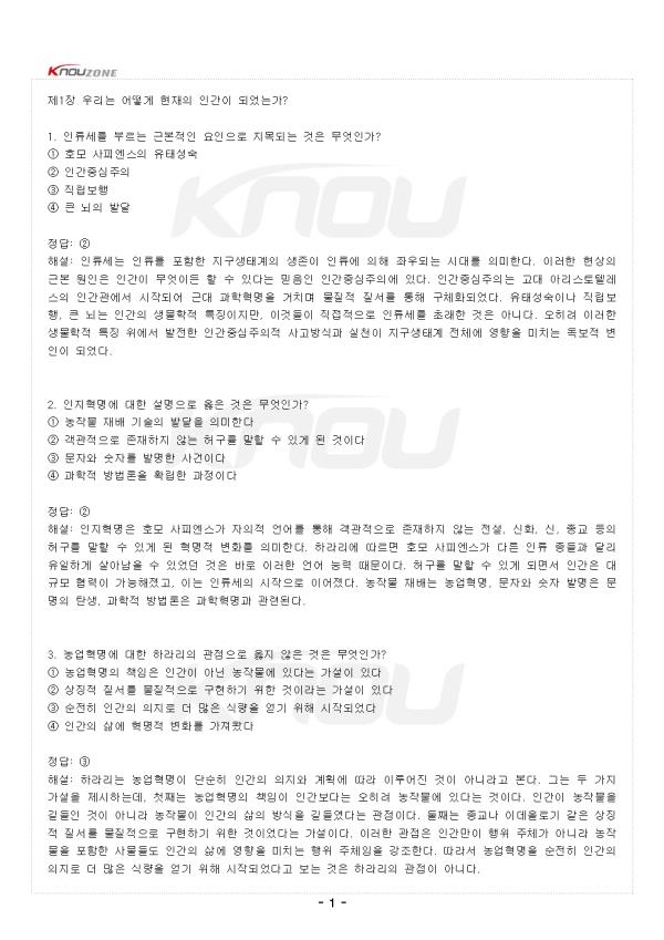 1. Àηù¼¼¸¦ ºÎ¸£´Â ±Ùº»ÀûÀÎ ¿äÀÎÀ¸·Î Áö¸ñµÇ´Â °ÍÀº ¹«¾ùÀΰ¡? ¨ç È£¸ð »çÇÇ¿£½ºÀÇ À¯Å¼º¼÷ ¨è Àΰ£Áß½ÉÁÖÀÇ ¨é Á÷¸³º¸Çà ¨ê Å« ³úÀÇ ¹ß´Þ Á¤´ä: ¨è ÇØ¼³: Àηù¼¼´Â Àηù¸¦ Æ÷ÇÔÇÑ Áö±¸»ýŰèÀÇ »ýÁ¸ÀÌ Àηù¿¡ ÀÇÇØ Á¿ìµÇ´Â ½Ã´ë¸¦ ÀǹÌÇÑ´Ù. ÀÌ·¯ÇÑ Çö»óÀÇ ±Ùº» ¿øÀÎÀº Àΰ£ÀÌ ¹«¾ùÀ̵ç ÇÒ ¼ö ÀÖ´Ù´Â ¹ÏÀ½ÀÎ Àΰ£Áß½ÉÁÖÀÇ¿¡ ÀÖ´Ù. Àΰ£Áß½ÉÁÖÀÇ´Â °í´ë ¾Æ¸®½ºÅäÅÚ·¹½ºÀÇ Àΰ£°ü¿¡¼ ½ÃÀÛµÇ¾î ±Ù´ë °úÇÐÇõ¸íÀ» °ÅÄ¡¸ç ¹°ÁúÀû Áú¼¸¦ ÅëÇØ ±¸Ã¼ÈµÇ¾ú´Ù. À¯Å¼º¼÷À̳ª Á÷¸³º¸Çà, Å« ³ú´Â Àΰ£ÀÇ »ý¹°ÇÐÀû Ư¡ÀÌÁö¸¸, À̰͵éÀÌ Á÷Á¢ÀûÀ¸·Î Àηù¼¼¸¦ ÃÊ·¡ÇÑ °ÍÀº ¾Æ´Ï´Ù. ¿ÀÈ÷·Á ÀÌ·¯ÇÑ »ý¹°ÇÐÀû Ư¡ À§¿¡¼ ¹ßÀüÇÑ Àΰ£Áß½ÉÁÖÀÇÀû »ç°í¹æ½Ä°ú ½ÇõÀÌ Áö±¸»ýŰè Àüü¿¡ ¿µÇâÀ» ¹ÌÄ¡´Â µ¶º¸Àû º¯ÀÎÀÌ µÇ¾ú´Ù. 2. ÀÎÁöÇõ¸í¿¡ ´ëÇÑ ¼³¸íÀ¸·Î ¿ÇÀº °ÍÀº ¹«¾ùÀΰ¡? ¨ç ³óÀÛ¹° Àç¹è ±â¼úÀÇ ¹ß´ÞÀ» ÀǹÌÇÑ´Ù ¨è °´°üÀûÀ¸·Î Á¸ÀçÇÏÁö ¾Ê´Â Ç㱸¸¦ ¸»ÇÒ ¼ö ÀÖ°Ô µÈ °ÍÀÌ´Ù ¨é ¹®ÀÚ¿Í ¼ýÀÚ¸¦ ¹ß¸íÇÑ »ç°ÇÀÌ´Ù ¨ê °úÇÐÀû ¹æ¹ý·ÐÀ» È®¸³ÇÑ °úÁ¤ÀÌ´Ù Á¤´ä: ¨è ÇØ¼³: ÀÎÁöÇõ¸íÀº È£¸ð »çÇÇ¿£½º°¡ ÀÚÀÇÀû ¾ð¾î¸¦ ÅëÇØ °´°üÀûÀ¸·Î Á¸ÀçÇÏÁö ¾Ê´Â Àü¼³, ½ÅÈ, ½Å, Á¾±³ µîÀÇ Ç㱸¸¦ ¸»ÇÒ ¼ö ÀÖ°Ô µÈ Çõ¸íÀû º¯È¸¦ ÀǹÌÇÑ´Ù. Ç϶󸮿¡ µû¸£¸é È£¸ð »çÇÇ¿£½º°¡ ´Ù¸¥ Àηù Á¾µé°ú ´Þ¸® À¯ÀÏÇÏ°Ô »ì¾Æ³²À» ¼ö ÀÖ¾ú´ø °ÍÀº ¹Ù·Î ÀÌ·¯ÇÑ ¾ð¾î ´É·Â ¶§¹®ÀÌ´Ù. Ç㱸¸¦ ¸»ÇÒ ¼ö ÀÖ°Ô µÇ¸é¼ Àΰ£Àº ´ë±Ô¸ð Çù·ÂÀÌ °¡´ÉÇØÁ³°í, ÀÌ´Â Àηù¼¼ÀÇ ½ÃÀÛÀ¸·Î À̾îÁ³´Ù. ³óÀÛ¹° Àç¹è´Â ³ó¾÷Çõ¸í, ¹®ÀÚ¿Í ¼ýÀÚ ¹ß¸íÀº ¹®¸íÀÇ Åº»ý, °úÇÐÀû ¹æ¹ý·ÐÀº °úÇÐÇõ¸í°ú °ü·ÃµÈ´Ù. -Áß·«- |