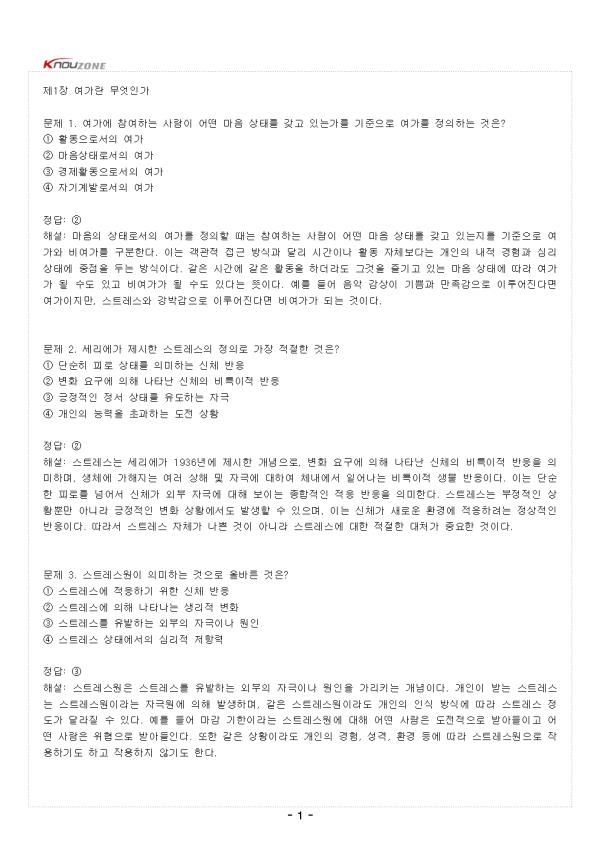 ¹®Á¦ 1. ¿©°¡¿¡ Âü¿©ÇÏ´Â »ç¶÷ÀÌ ¾î¶² ¸¶À½ »óŸ¦ °®°í Àִ°¡¸¦ ±âÁØÀ¸·Î ¿©°¡¸¦ Á¤ÀÇÇÏ´Â °ÍÀº? ¨ç Ȱµ¿À¸·Î¼ÀÇ ¿©°¡ ¨è ¸¶À½»óÅ·μÀÇ ¿©°¡ ¨é °æÁ¦È°µ¿À¸·Î¼ÀÇ ¿©°¡ ¨ê ÀÚ±â°è¹ß·Î¼ÀÇ ¿©°¡ Á¤´ä: ¨è ÇØ¼³: ¸¶À½ÀÇ »óÅ·μÀÇ ¿©°¡¸¦ Á¤ÀÇÇÒ ¶§´Â Âü¿©ÇÏ´Â »ç¶÷ÀÌ ¾î¶² ¸¶À½ »óŸ¦ °®°í ÀÖ´ÂÁö¸¦ ±âÁØÀ¸·Î ¿©°¡¿Í ºñ¿©°¡¸¦ ±¸ºÐÇÑ´Ù. ÀÌ´Â °´°üÀû Á¢±Ù ¹æ½Ä°ú ´Þ¸® ½Ã°£À̳ª Ȱµ¿ ÀÚüº¸´Ù´Â °³ÀÎÀÇ ³»Àû °æÇè°ú ½É¸® »óÅ¿¡ ÁßÁ¡À» µÎ´Â ¹æ½ÄÀÌ´Ù. °°Àº ½Ã°£¿¡ °°Àº Ȱµ¿À» ÇÏ´õ¶óµµ ±×°ÍÀ» Áñ±â°í ÀÖ´Â ¸¶À½ »óÅ¿¡ µû¶ó ¿©°¡°¡ µÉ ¼öµµ ÀÖ°í ºñ¿©°¡°¡ µÉ ¼öµµ ÀÖ´Ù´Â ¶æÀÌ´Ù. ¿¹¸¦ µé¾î À½¾Ç °¨»óÀÌ ±â»Ý°ú ¸¸Á·°¨À¸·Î ÀÌ·ç¾îÁø´Ù¸é ¿©°¡ÀÌÁö¸¸, ½ºÆ®·¹½º¿Í °¹Ú°¨À¸·Î ÀÌ·ç¾îÁø´Ù¸é ºñ¿©°¡°¡ µÇ´Â °ÍÀÌ´Ù. ¹®Á¦ 2. ¼¼¸®¿¡°¡ Á¦½ÃÇÑ ½ºÆ®·¹½ºÀÇ Á¤ÀÇ·Î °¡Àå ÀûÀýÇÑ °ÍÀº? ¨ç ´Ü¼øÈ÷ ÇÇ·Î »óŸ¦ ÀǹÌÇÏ´Â ½Åü ¹ÝÀÀ ¨è º¯È ¿ä±¸¿¡ ÀÇÇØ ³ªÅ¸³ ½ÅüÀÇ ºñƯÀÌÀû ¹ÝÀÀ ¨é ±àÁ¤ÀûÀÎ Á¤¼ »óŸ¦ À¯µµÇÏ´Â ÀÚ±Ø ¨ê °³ÀÎÀÇ ´É·ÂÀ» ÃʰúÇÏ´Â µµÀü »óȲ Á¤´ä: ¨è ÇØ¼³: ½ºÆ®·¹½º´Â ¼¼¸®¿¡°¡ 1936³â¿¡ Á¦½ÃÇÑ °³³äÀ¸·Î, º¯È ¿ä±¸¿¡ ÀÇÇØ ³ªÅ¸³ ½ÅüÀÇ ºñƯÀÌÀû ¹ÝÀÀÀ» ÀǹÌÇϸç, »ýü¿¡ °¡ÇØÁö´Â ¿©·¯ »óÇØ ¹× Àڱؿ¡ ´ëÇÏ¿© ü³»¿¡¼ ÀϾ´Â ºñƯÀÌÀû »ý¹° ¹ÝÀÀÀÌ´Ù. ÀÌ´Â ´Ü¼øÇÑ ÇǷθ¦ ³Ñ¾î¼ ½Åü°¡ ¿ÜºÎ Àڱؿ¡ ´ëÇØ º¸ÀÌ´Â Á¾ÇÕÀûÀÎ ÀûÀÀ ¹ÝÀÀÀ» ÀǹÌÇÑ´Ù. ½ºÆ®·¹½º´Â ºÎÁ¤ÀûÀÎ »óȲ»Ó¸¸ ¾Æ´Ï¶ó ±àÁ¤ÀûÀÎ º¯È »óȲ¿¡¼µµ ¹ß»ýÇÒ ¼ö ÀÖÀ¸¸ç, ÀÌ´Â ½Åü°¡ »õ·Î¿î ȯ°æ¿¡ ÀûÀÀÇÏ·Á´Â Á¤»óÀûÀÎ ¹ÝÀÀÀÌ´Ù. µû¶ó¼ ½ºÆ®·¹½º ÀÚü°¡ ³ª»Û °ÍÀÌ ¾Æ´Ï¶ó ½ºÆ®·¹½º¿¡ ´ëÇÑ ÀûÀýÇÑ ´ëó°¡ Áß¿äÇÑ °ÍÀÌ´Ù. - Áß·« - |