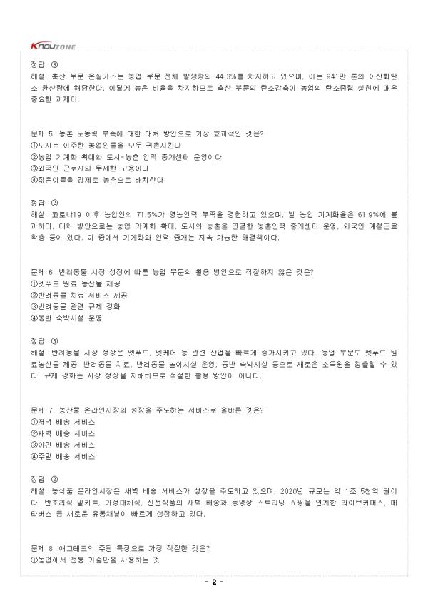 ¹®Á¦ 1. ¿ì¸®³ª¶ó°¡ °æÁ¦¹ßÀüÀ» À§ÇØ Ã¼°áÇÑ FTAÀÇ ÁÖµÈ ¿µÇâÀ¸·Î °¡Àå ÀûÀýÇÑ °ÍÀº? ¨ç±¹³» ³ó»ê¹° °¡°ÝÀÌ »ó½ÂÇÏ¿© ³ó°¡ ¼öÀÍÀÌ Áõ°¡Çß´Ù ¨è±¹³» ³ó¾÷½ÃÀåÀÌ ÇØ¿Ü ³ó»ê¹°ÀÇ ¼öÀÔÀ¸·Î Å« ¿µÇâÀ» ¹Þ°Ô µÇ¾ú´Ù ¨é³ó»ê¹° ¼öÃâÀÌ ±Þ°ÝÈ÷ Áõ°¡ÇÏ¿© ¼öÃâ ±â¹ÝÀ» È®º¸Çß´Ù ¨ê³óÃÌÁö¿ªÀÇ Àα¸°¡ Áõ°¡ÇÏ°í ±Í³óÀÚ°¡ ´Ã¾î³µ´Ù Á¤´ä: ¨è ÇØ¼³: FTA ü°á·Î ÀÎÇØ °æÁ¦ºí·ÏÀ¸·Î ÁøÈÇÏ¸é¼ ±¹³» ³ó¾÷½ÃÀå¿¡ ÇØ¿Ü ³ó»ê¹°ÀÇ À¯ÀÔÀÌ Áõ°¡ÇÏ°Ô µÇ¾ú´Ù. ÀÌ´Â ±¹³» ³ó»ê¹°°úÀÇ °æÀï ½Éȸ¦ ÀǹÌÇϸç, ¿ì¸® ³ó¾÷Àº ¸Þ°¡ FTAÀÇ Àü·«Àû °¡Ä¡¸¦ ºÐ¼®Çϰí ÇÇÇØ ´ëÃ¥À» ¸¶·ÃÇØ¾ß ÇÏ´Â »óȲÀÌ µÇ¾ú´Ù. ±¹³» ³ó»ê¹° °¡°Ý Ç϶ô°ú ³ó°¡ÀÇ °æ¿µ ¾î·Á¿òÀ¸·Î À̾îÁ³´Ù. ¹®Á¦ 2. ±¹Á¦ °ø±Þ¸Á ºÒ¾ÈÀÌ ³ó»ê¹° °¡°Ý¿¡ ¿µÇâÀ» ¹ÌÄ¡´Â ¸ÞÄ¿´ÏÁòÀ¸·Î ¿Ã¹Ù¸¥ °ÍÀº? ¨ç°¢±¹ÀÇ ¹«¿ªºÐÀï°ú ÀüÀïÀ¸·Î »ý»ê±¹ÀÇ ¼öÃâ±ÔÁ¦°¡ ¹ß»ýÇÑ´Ù ¨è³ó»ê¹°ÀÇ »ý»ê·®ÀÌ ÀÚµ¿À¸·Î °¨¼ÒÇÏ¿© ±¹³» °ø±ÞÀÌ ºÎÁ·ÇØÁø´Ù ¨é³ó¾÷ ±â¼úÀÇ ¹ß´Þ·Î »ý»ê È¿À²ÀÌ ³ô¾ÆÁ® °¡°ÝÀÌ Ç϶ôÇÑ´Ù ¨êÁ¤ºÎÀÇ º¸Á¶±Ý Á¤Ã¥À¸·Î ÀÎÇØ ³ó»ê¹° °¡°ÝÀÌ ÀλóµÈ´Ù Á¤´ä: ¨ç ÇØ¼³: °¢±¹ÀÇ ¹«¿ªºÐÀï°ú ÀüÀï, ±âÈĺ¯È¿¡ µû¸¥ »ý»ê±¹ÀÇ ¼öÃâ±ÔÁ¦°¡ ±¹Á¦ °î¹° °¡°Ý°ú ¿øÀÚÀç °¡°ÝÀ» ±Þµî½ÃŲ´Ù. ¼öÀÔ ÀÇÁ¸µµ°¡ ³ôÀº À¯·ù, ºñ·á, °î¹°, »ç·á µîÀÇ ¿øÀÚÀç ¼ö±ÞÀÌ ºÒ¾ÈÁ¤ÇØÁö¸é¼ ±¹Á¦ °ø±Þ¸Á ºÒ¾ÈÀÌ ½Éȵǰí À̰ÍÀÌ ¿ì¸®³ª¶ó ³ó¾÷°æ¿µºñ »ó½ÂÀÇ ÁÖµÈ ¿øÀÎÀÌ µÈ´Ù. -Áß·« - |